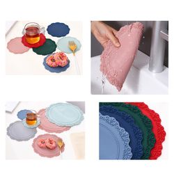 This product is mainly made of food grade silicone.It is odorless and high temperature resistant.It is antiskid, heat-insulating and scald resistant,and can effectively protect your table top.It is integrally formed and has good resilience.When you fold it, it will not deform.Its outermost circle is a three-dimensional concave convex lace texture design,simple and fashionable.It is also waterproof and oil proof.You can wash it directly.It can be used as a coaster,coffee mat,pot mat,tea mat,heat insulation mat, pot mat,etc.It is an excellent choice for daily dinners,family gatherings,hotels,restaurants and coffee shops.You can choose the size and customize the logo according to your needs.